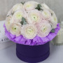 17 белых ранункулюсов в шляпной коробке в Анжеро-Судженске