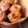 На фото букет из 7 персиковых роз. В составе: роза 7 шт, дизайнерская упаковка 1 шт, атласная лента 1 шт, . Все цветы свежие и ароматные, букет красиво оформлен и отлично подходит для подарка. Доступна доставка цветов или самовывоз.